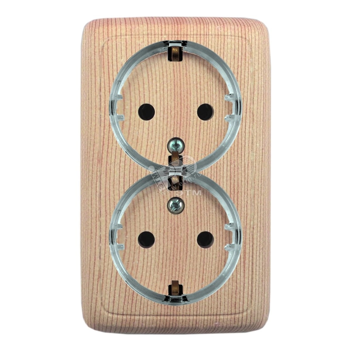 Розетка двойная наружная с заземлением с изоляционной пластиной сосна (стакан)