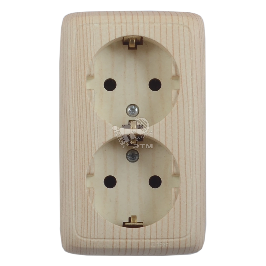 Розетка двойная наружная с заземлением с изоляционной пластиной сосна