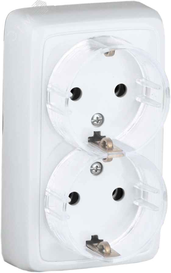 Розетка двойная наружная с заземлением с изоляционной пластиной белая (стакан)