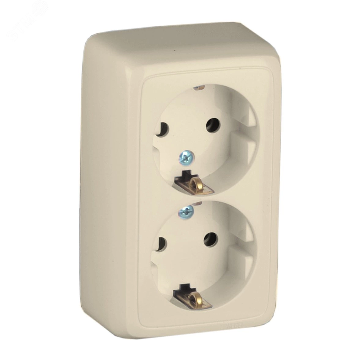 Розетка двойная наружная с заземлением с изоляционной пластиной слоновая кость