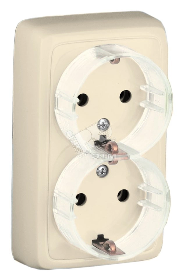 Розетка двойная наружная с заземлением с шторками с изолирующей пластиной (стакан) слоновая кость