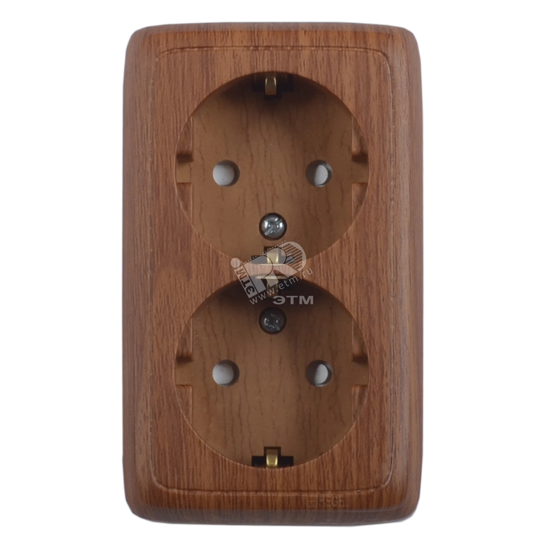 Розетка двойная наружная с заземлением со шторками с изоляционной пластиной дуб