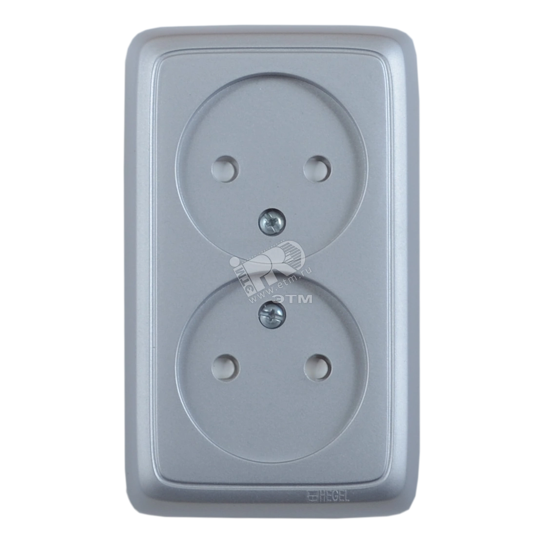 Розетка двойная наружная со шторками с изоляционной пластиной серебро
