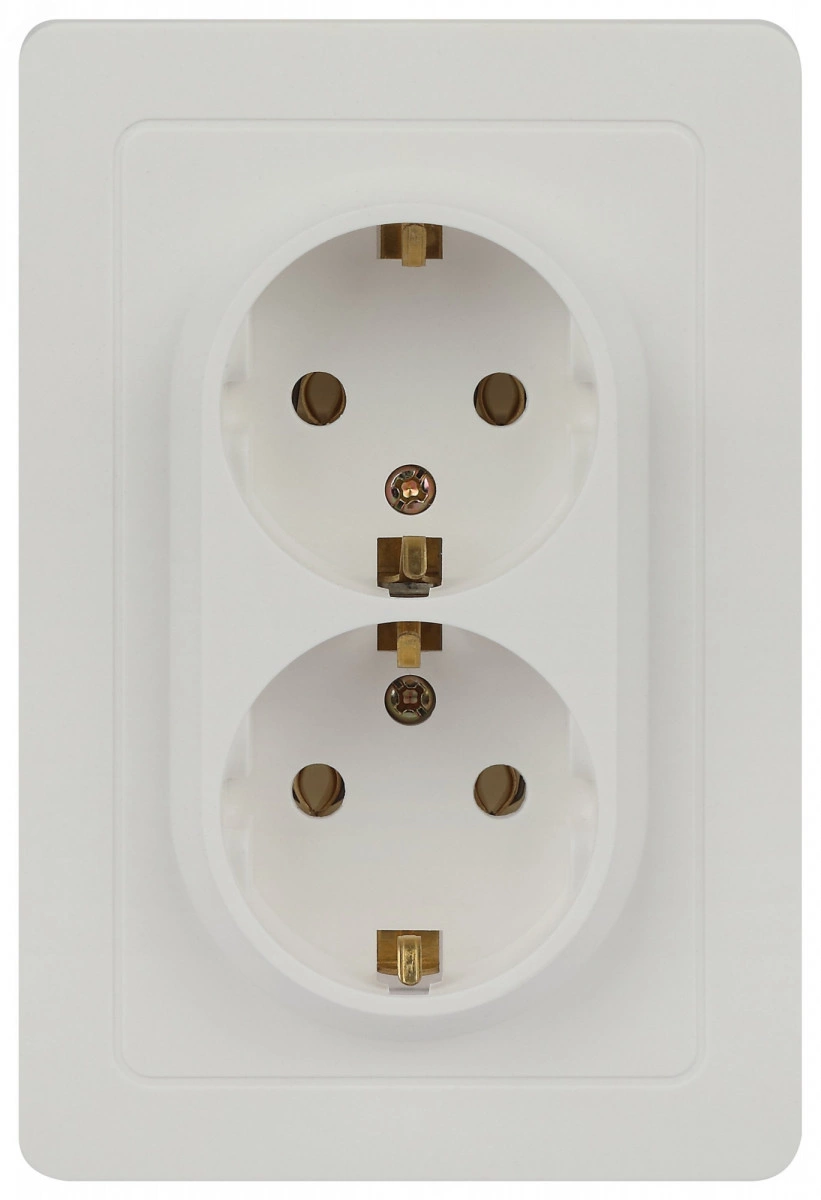 Розетка двойная с заземлением серии Intro ST скрытой установки цвет белый 7-205-01. Номинальные характеристики 16А 250В . Розетка выполнена из негорючего термопласта, укомплектована одноместной рамкой, оснащена винтовыми клеммами. Клеммы с двумя отверстиями позволяют соединять соседние розетки шлейфом. Установка в подрозетник производится как на монтажные лапки, так и на винты.