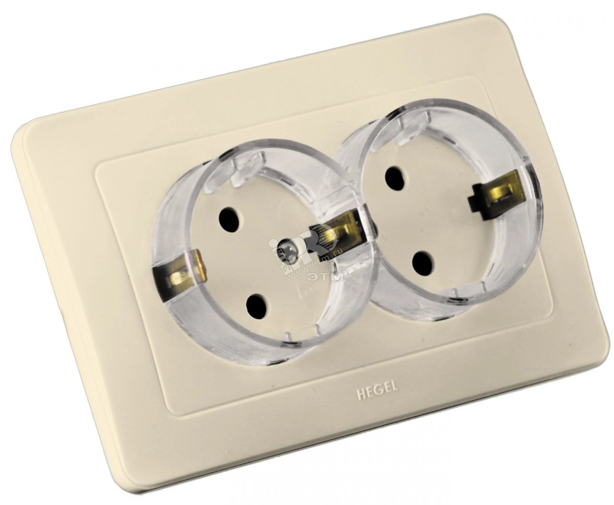 Розетка двойная скрытая с заземлением со шторками (стакан) слоновая кость