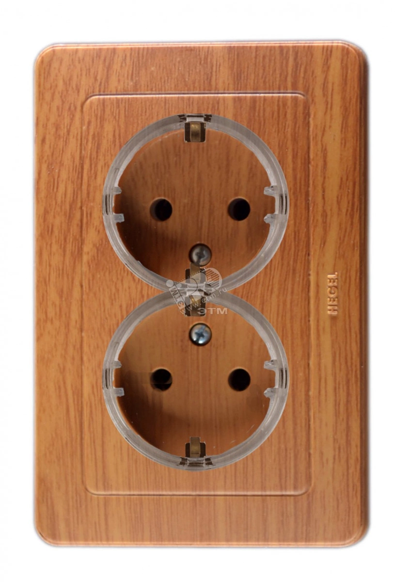 Розетка двойная скрытая с заземлением (стакан) дуб