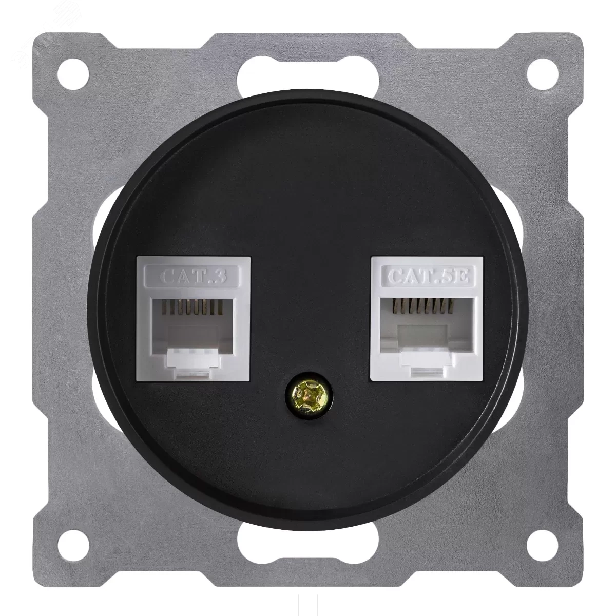 Полное описание: Розетка двойная телефон/компьютер RJ11/RJ45 кат.5e, цвет чёрный (серия Florence)
