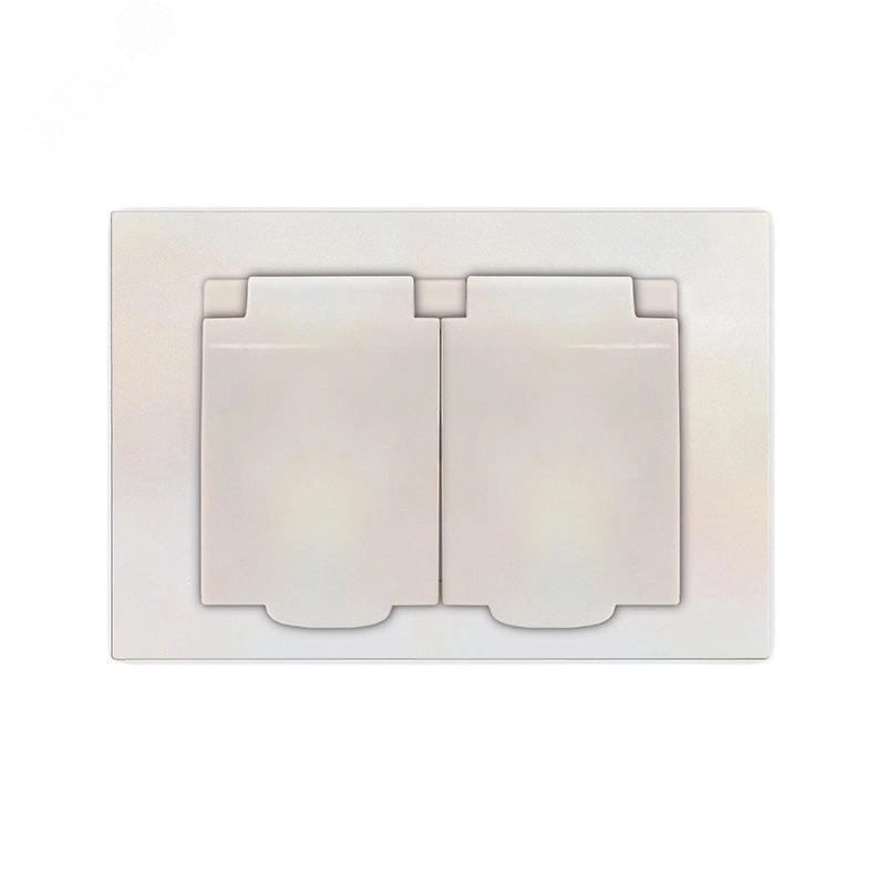 Полное описание: Розетка двухместная серия Афина с/з с крышкой, с/у, 16А, 220В, жемчуг (еврослот)