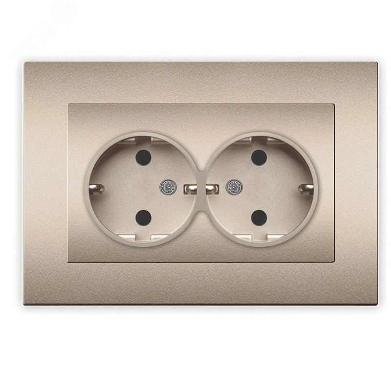 Полное описание: Розетка двухместная серия Афина с/з, с/у, 16А, 220В, шампань (еврослот)