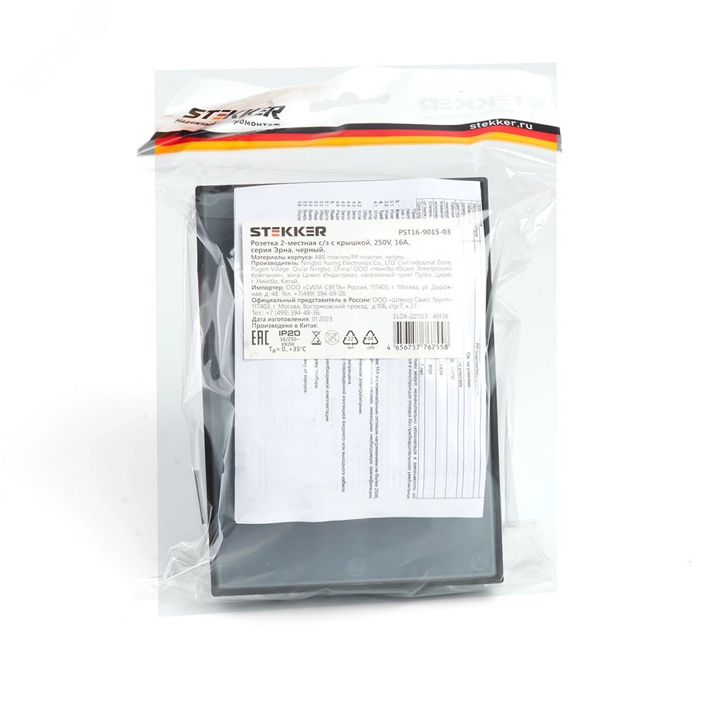 Розетка STEKKER PST16-9015-03 на 2 поста, с крышкой, с заземлением. Материал: PP пластик/ABS пластик, латунь, цвет черный, размер 117*84*45мм. Номинальное напряжение 250, номинальный ток 16А, диапазон рабочих температур 0..+35C, IP20. Серия Эрна ''TM Stekker'' разработана для комплексного обеспечения различных объектов электроустановочными изделиями, позволяет при неизменном качестве и безопасности существенно экономить бюджет. Конструкция и материалы специально оптимизированы для надежной и долговечной службы изделий, быстрого и удобного монтажа.