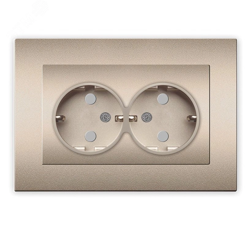 Полное описание: Розетка двухместная UNIVersal серия Афина с/з, с/у, з/ш 16А, 220В, шампань (еврослот), механизм