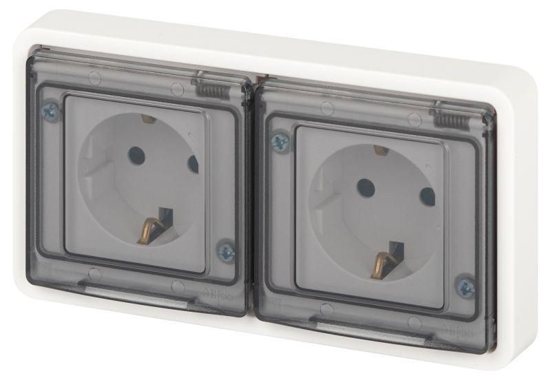 Розетка Эксперт 11-2523-01 2х2P+E гориз. IP55 16А-250В СУ бел. Эра Б0063276