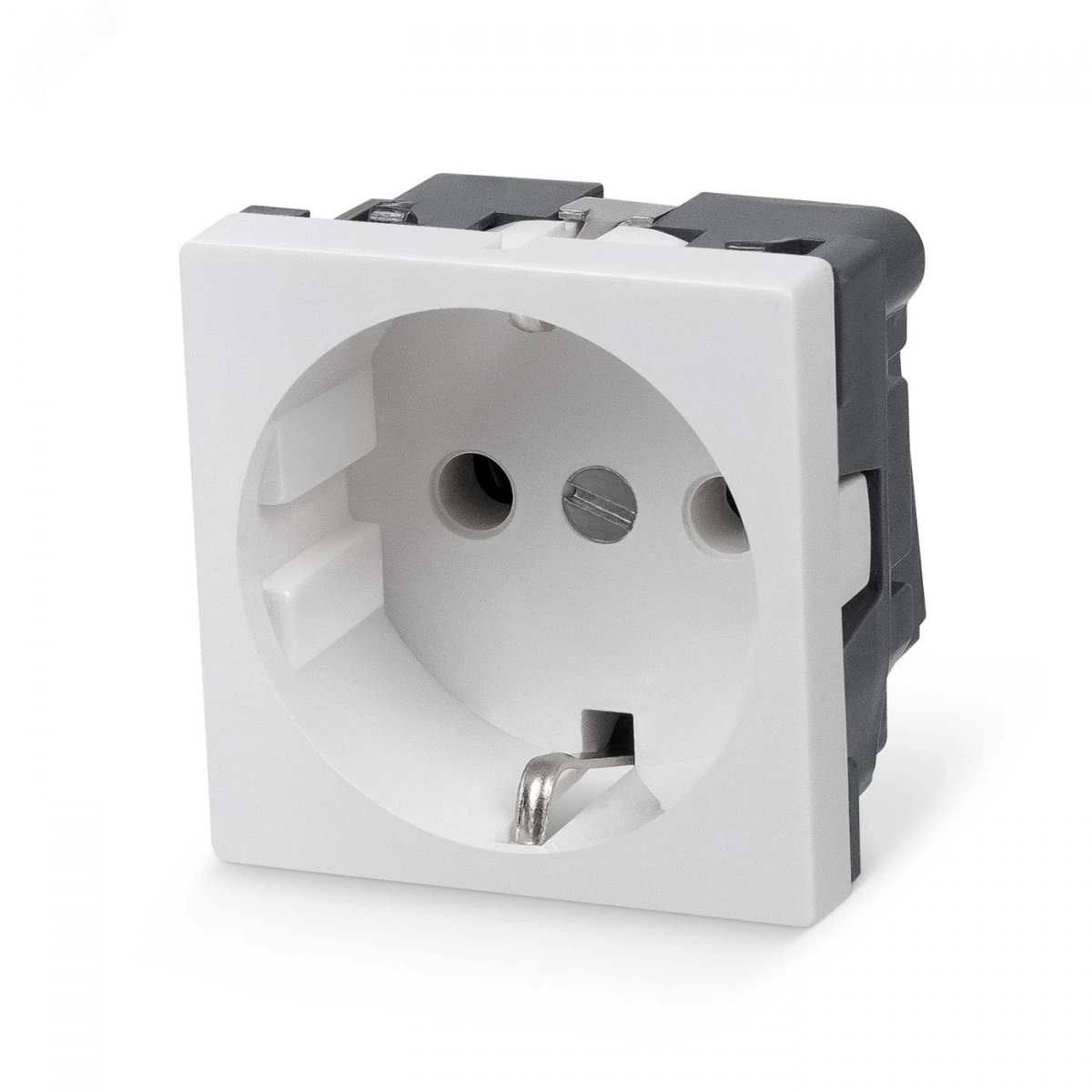 Электрическая розетка используется для установки в кабельные каналы, в настенные конструктивы или скрытно в стену. Розетка имеет стандартный размер Mosaic 45x45, благодаря чему может использоваться в розеточных суппортах различных производителей. Предназначена для подключения электрических приемников бытового и промышленного назначения с номинальным током до 16 А и напряжением до 250 В. Имеется заземляющий контакт т.н. немецкого стандарта. Материал розетки не поддерживает горение. Розетка имеет разборную конструкцию и состоит из двух частей - механизма основания и лицевой панели, белого цвета.
