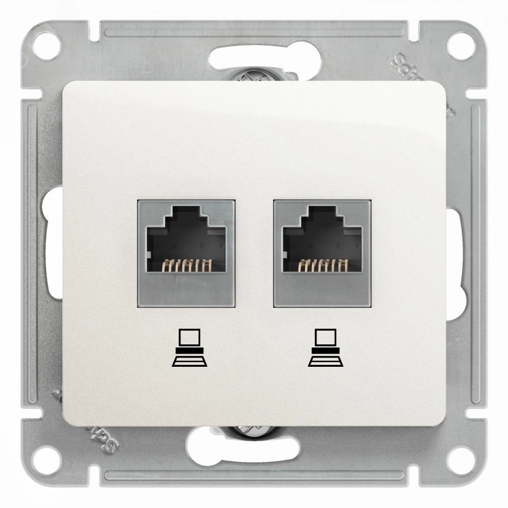 Механизм Schneider Electric Glossa (цвет перламутр) двойной розетки компьютерной с разъёмом RJ45 категория 5е предназначен для удобного и быстрого подключения вашего компьютера к компьютерной сети. Выполнен из материала PС+ASA, стойкого к УФ-излучению и появлению царапин.