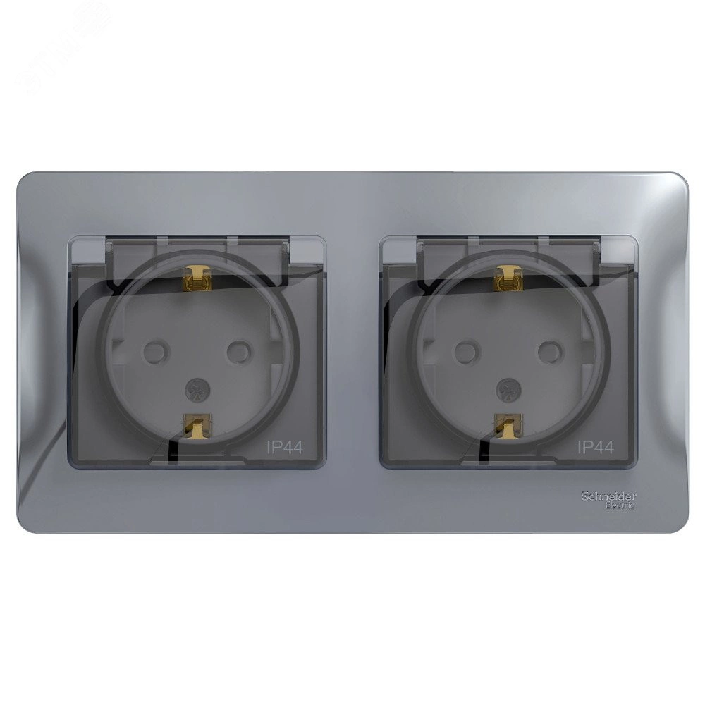 Розетка Schneider Electric Glossa (в сборе, цвет алюминий) двойная с заземлением, шторками и крышкой подходит для сетей 250 В, на ток 16 А. Изделие со степенью защиты IP44 обеспечит безопасность использования в ванной и на кухне. Заземляющий контакт обеспечивает дополнительную защиту от удара электрическим током. При наличии заземления электрический потенциал уходит в землю, защищая человека. Выполнен из материала PС+ASA, стойкого к УФ-излучению и появлению царапин.