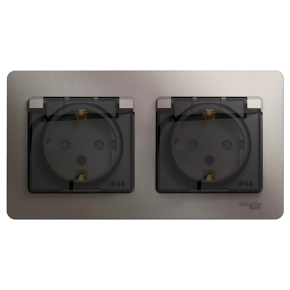 Розетка Systeme Electric (ранее Schneider Electric) серии Glossa (в сборе, цвет платина) двойная с заземлением, шторками и крышкой подходит для сетей 250 В, на ток 16 А. Изделие со степенью защиты IP44 обеспечит безопасность использования в ванной и на кухне. Заземляющий контакт обеспечивает дополнительную защиту от удара электрическим током. При наличии заземления электрический потенциал уходит в землю, защищая человека. Выполнен из материала PС+ASA, стойкого к УФ-излучению и появлению царапин.