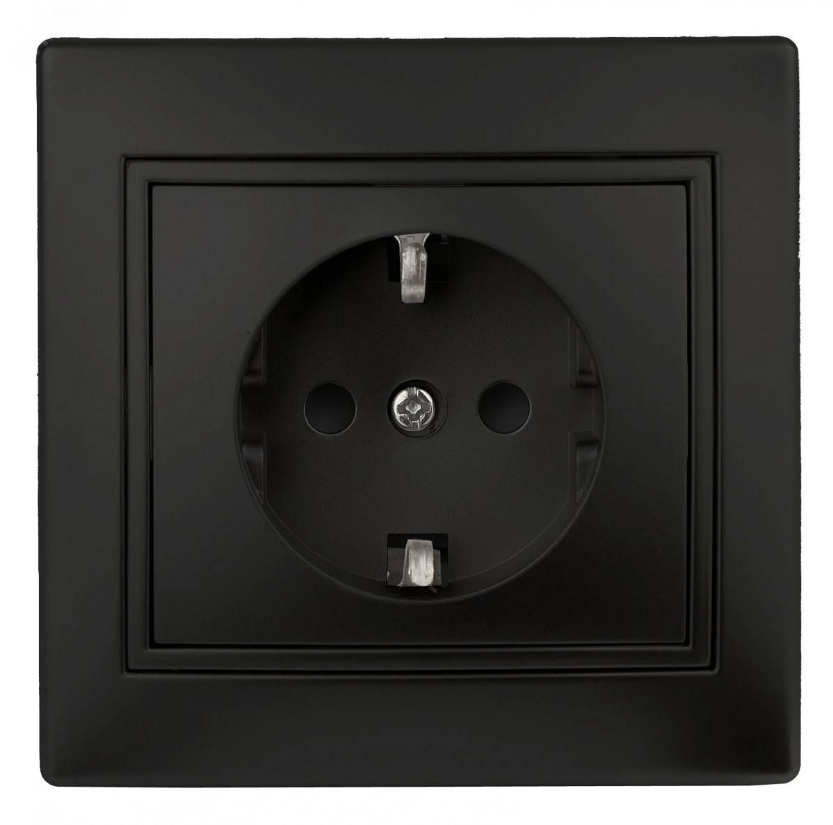 Розетка SCHUKO с крышкой, термопласт, черный      матовый