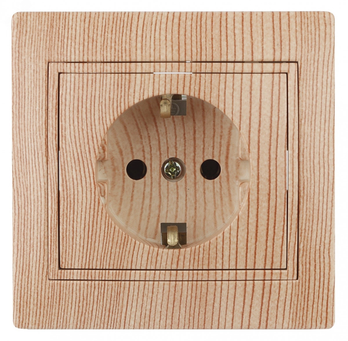 Розетка Intro Plano 1-202-11 с заземлением 2P+E Schuko, 16А-250В, IP20, СУ, сосна