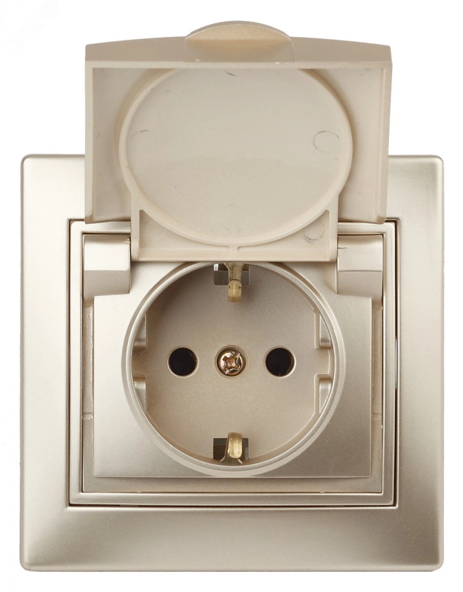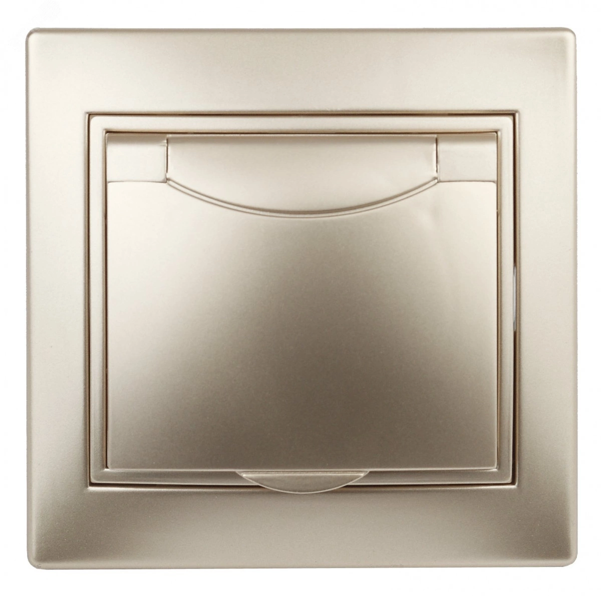 Полное описание: Розетка Intro Plano 1-203-04 с заземлением 2P+E Schuko с крышкой, 16А-250В, IP20, СУ, шампань