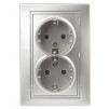 Розетка Intro Plano 1-205-03 с заземлением двойная 2X2P+E Schuko, 16А-250В, IP20, СУ, алюминий