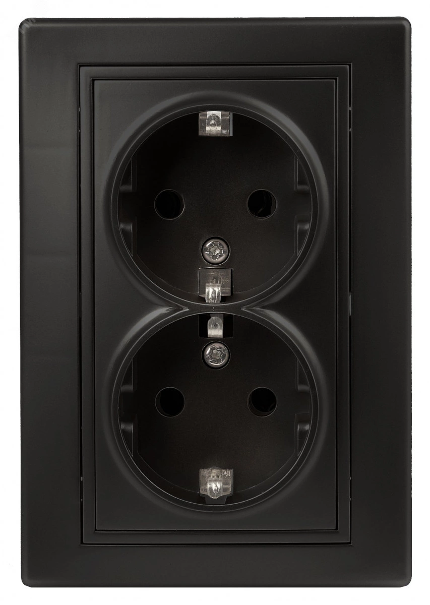Розетка двойная 2-я серии Intro Plano скрытой установки цвет антрацит 1-205-05. Номинальные характеристики 16А 250В. Розетка выполнена из керамики, укомплектована одноместной рамкой, оснащена винтовыми клеммами. Клеммы с двумя отверстиями позволяют соединять соседние розетки шлейфом. Установка в подрозетник производится как на монтажные лапки, так и на винты.