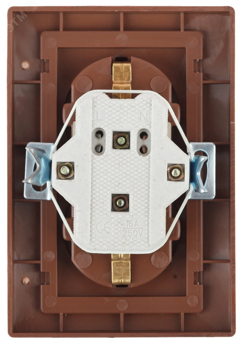 Розетка Intro Plano 1-205-10 с заземлением двойная 2X2P+E Schuko, 16А-250В, IP20, СУ, венге