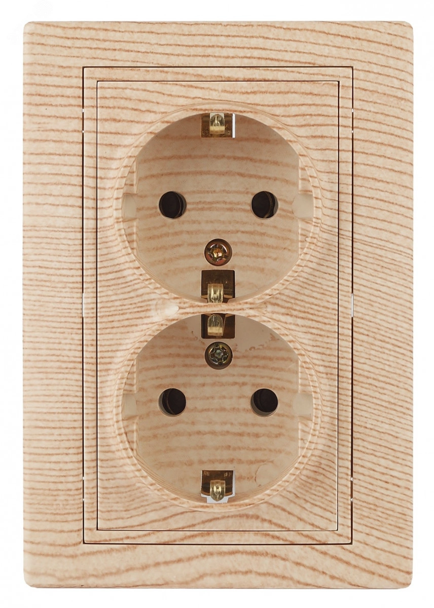 Розетка Intro Plano 1-205-11 с заземлением двойная 2X2P+E Schuko, 16А-250В, IP20, СУ, сосна