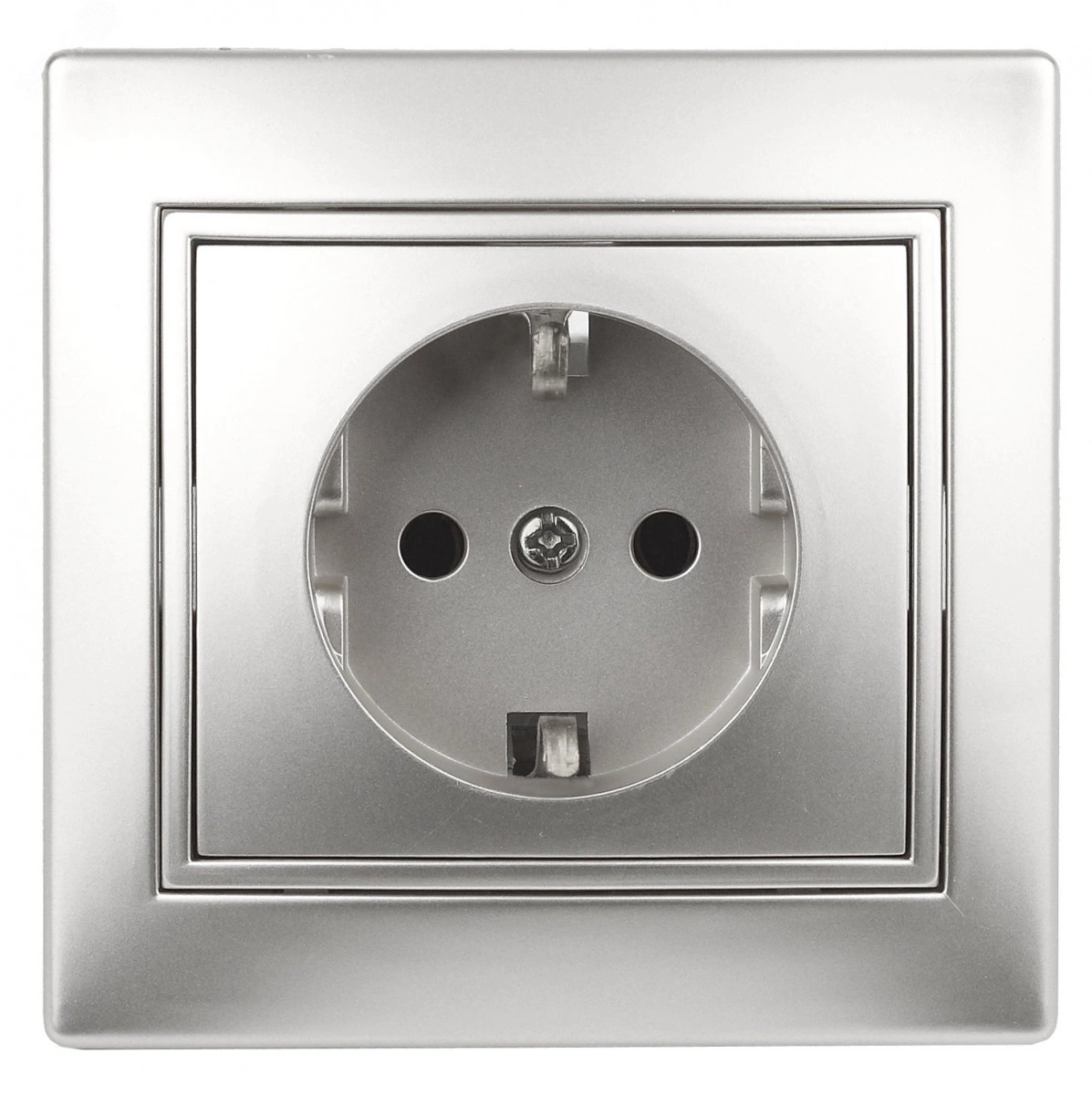 Полное описание: Розетка Intro Plano 1-206-03 с заземлением 2P+E Schuko со шторками, 16А-250В, IP20, СУ, алюминий