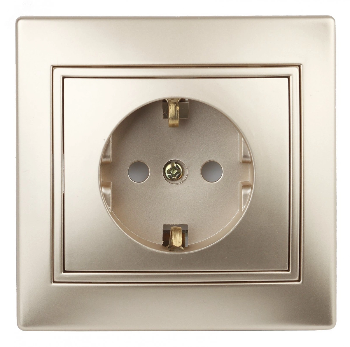 Полное описание: Розетка Intro Plano 1-206-04 с заземлением 2P+E Schuko со шторками, 16А-250В, IP20, СУ, шампань