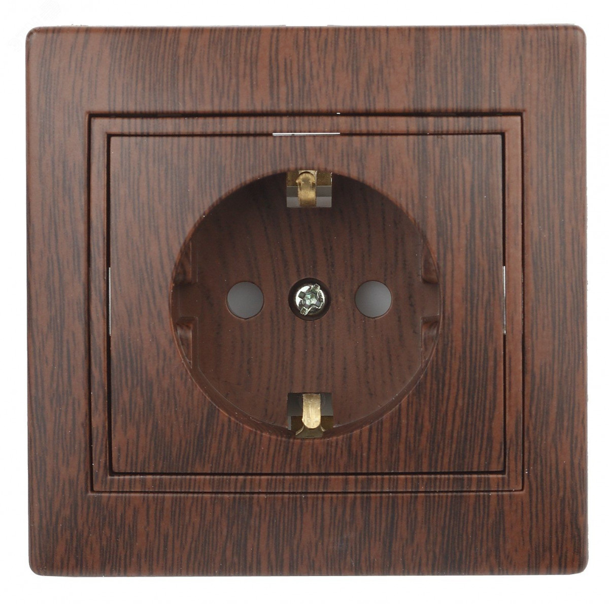 Полное описание: Розетка Intro Plano 1-206-10 с заземлением 2P+E Schuko со шторками, 16А-250В, IP20, СУ, венге