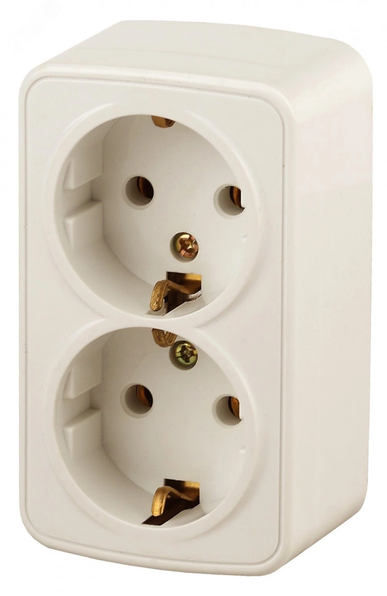 Розетка Intro Polo 3-204-02 с заземлением двойная 2х2P+E Schuko, 16A-250В, IP20, ОУ, слоновая кость