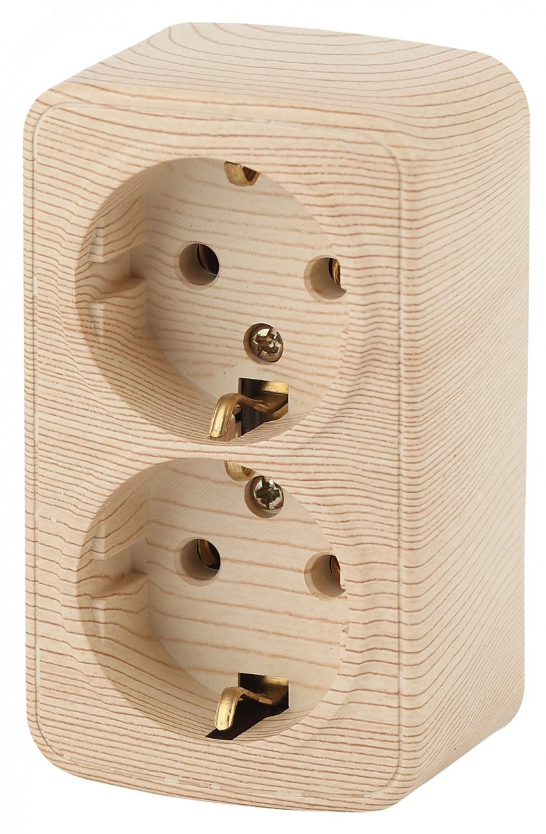Розетка Intro Polo 3-204-11 с заземлением двойная 2х2P+E Schuko, 16A-250В, IP20, ОУ, сосна