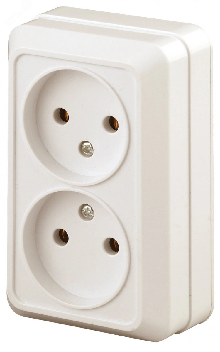 Розетка двойная 2-я серии Intro Quadro открытой установки цвет слоновая кость 2-203-02. Номинальные характеристики 16А 250В. Розетка выполнена из керамики, стали и латуни, оснащёна винтовыми зажимами.