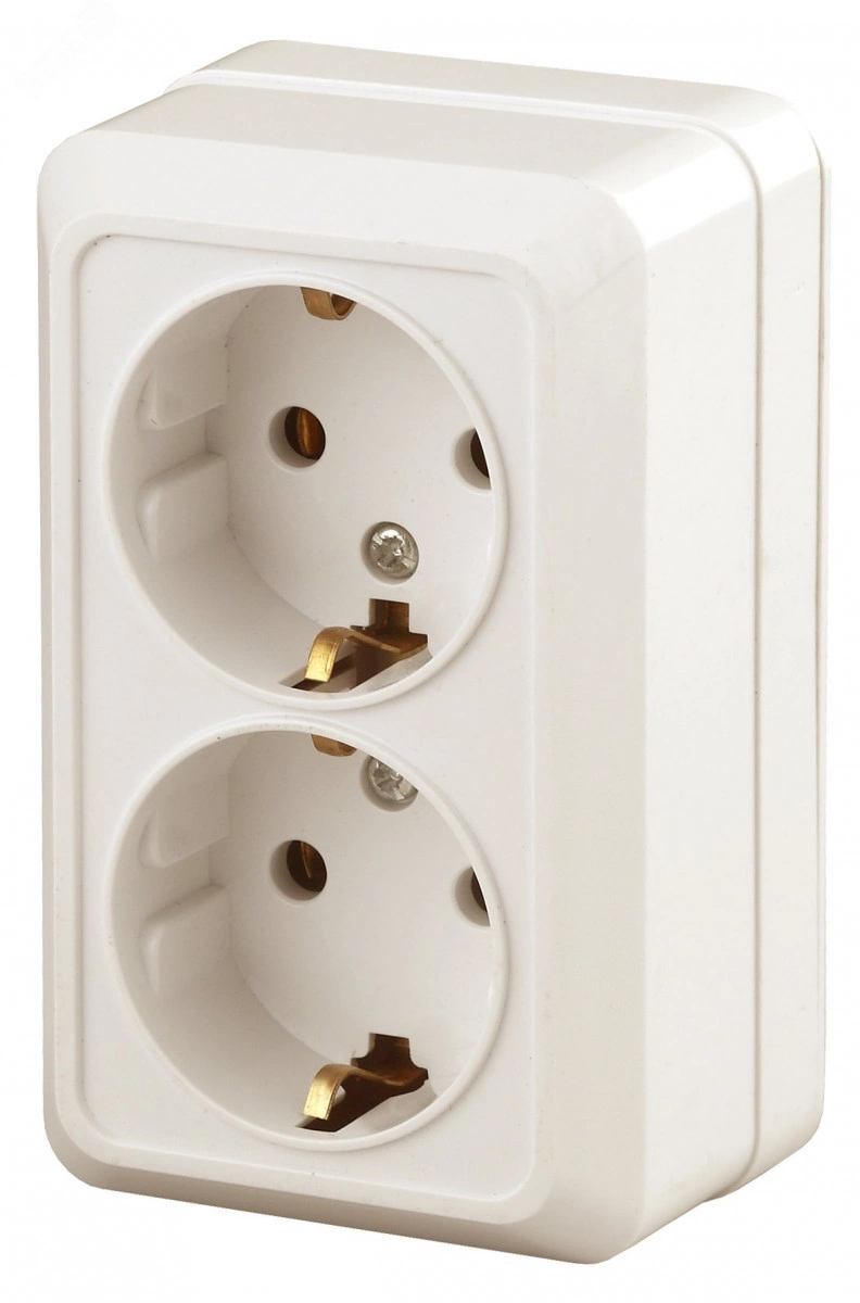 Розетка двойная 2-я серии Intro Quadro открытой установки цвет слоновая кость 2-204-02. Номинальные характеристики 16А 250В. Розетка выполнена из керамики, стали и латуни, оснащёна винтовыми зажимами.