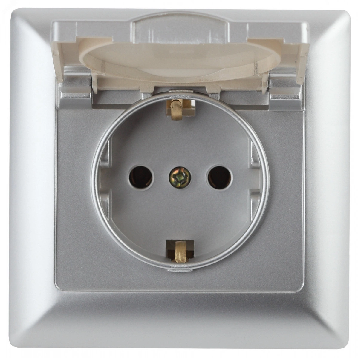 Полное описание: Розетка Intro Solo 4-203-03 с заземлением 2P+E Schuko с крышкой, 16А-250В, IP20, СУ, алюминий