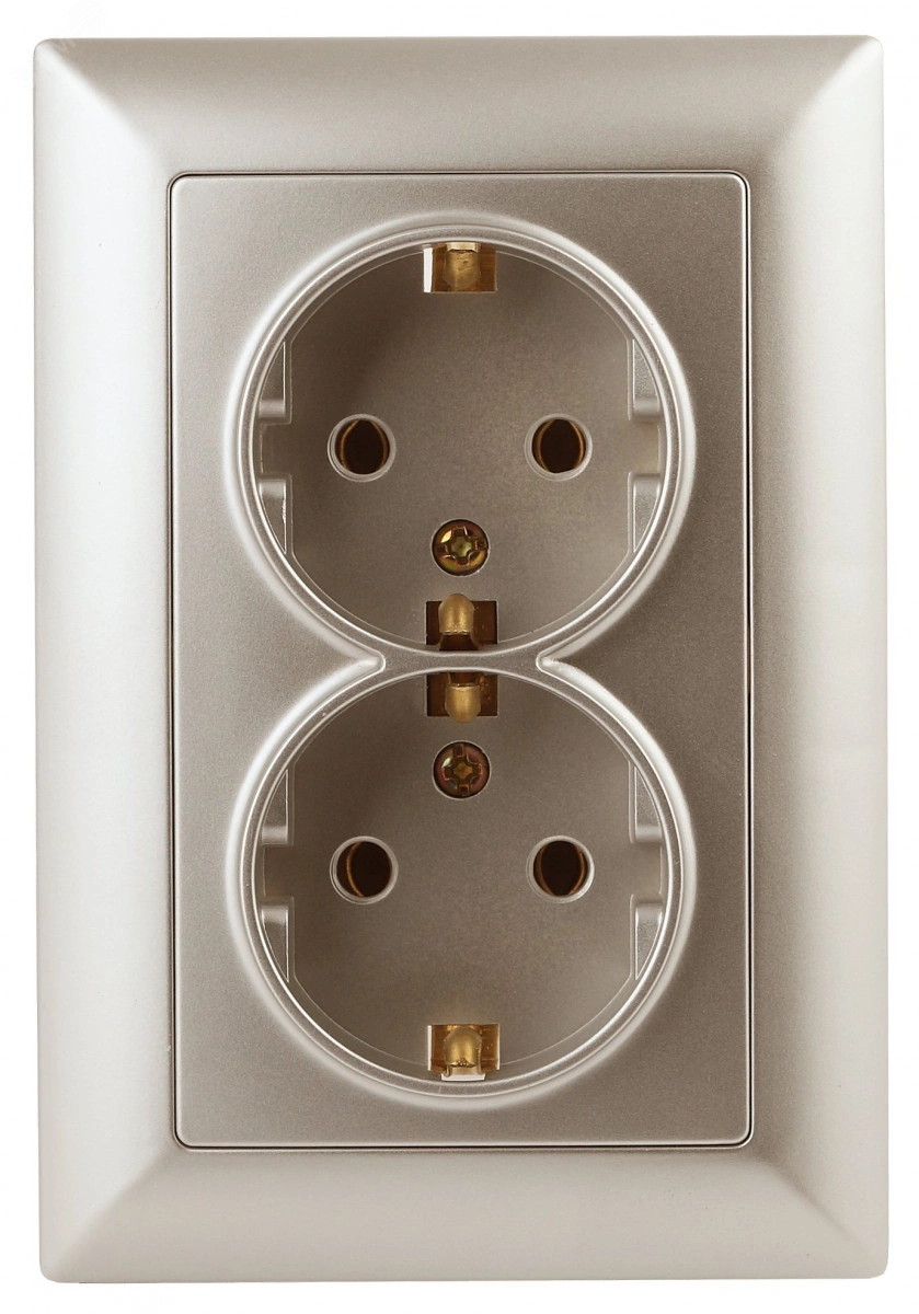 Розетка Intro Solo 4-205-04 с заземлением двойная 2X2P+E Schuko, 16А-250В, IP20, СУ, шампань