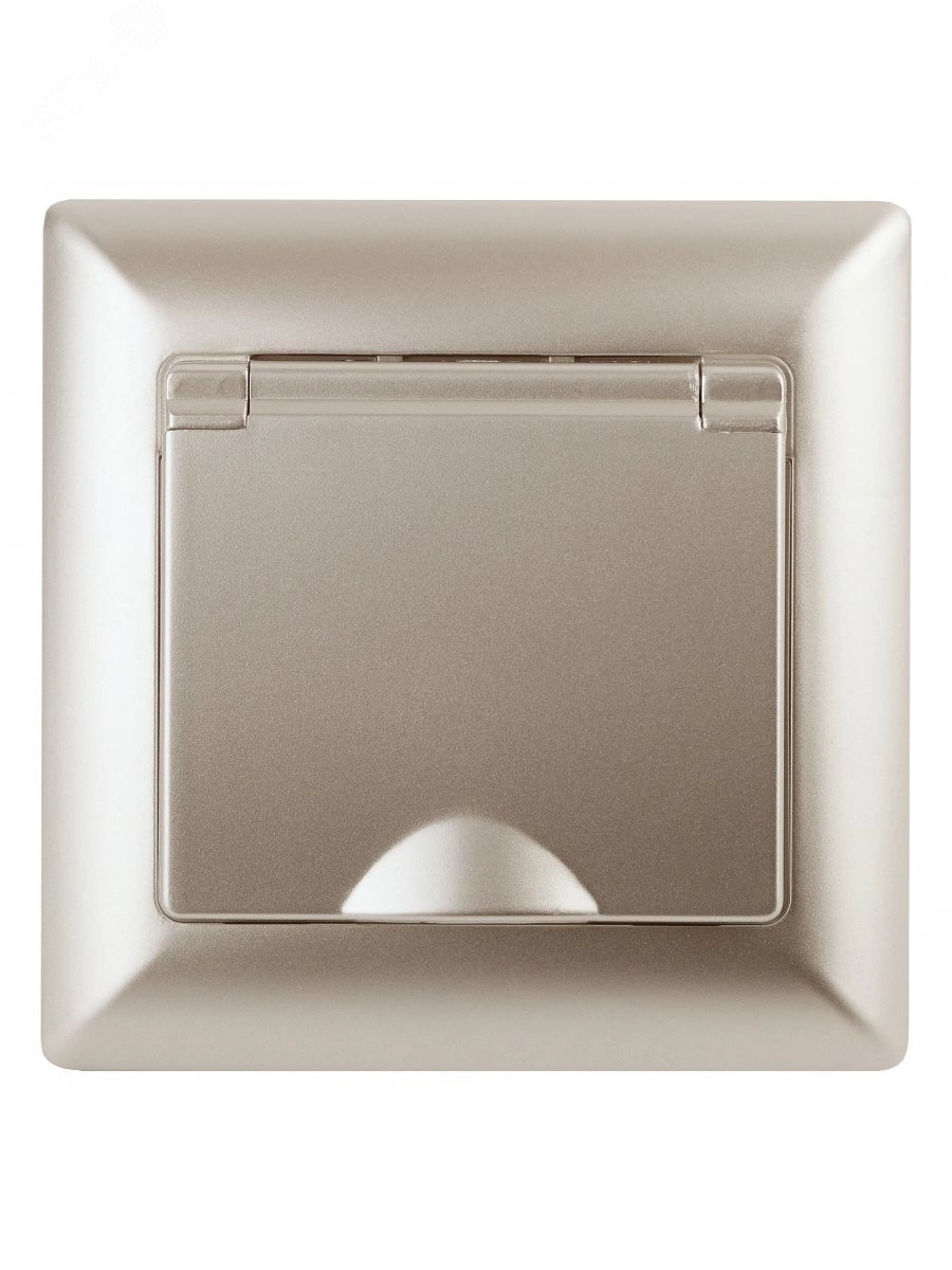 Розетка Intro Solo 4-207-04 с заземлением 2P+E Schuko с крышкой шторками, 16А-250В, IP20, СУ, шампань