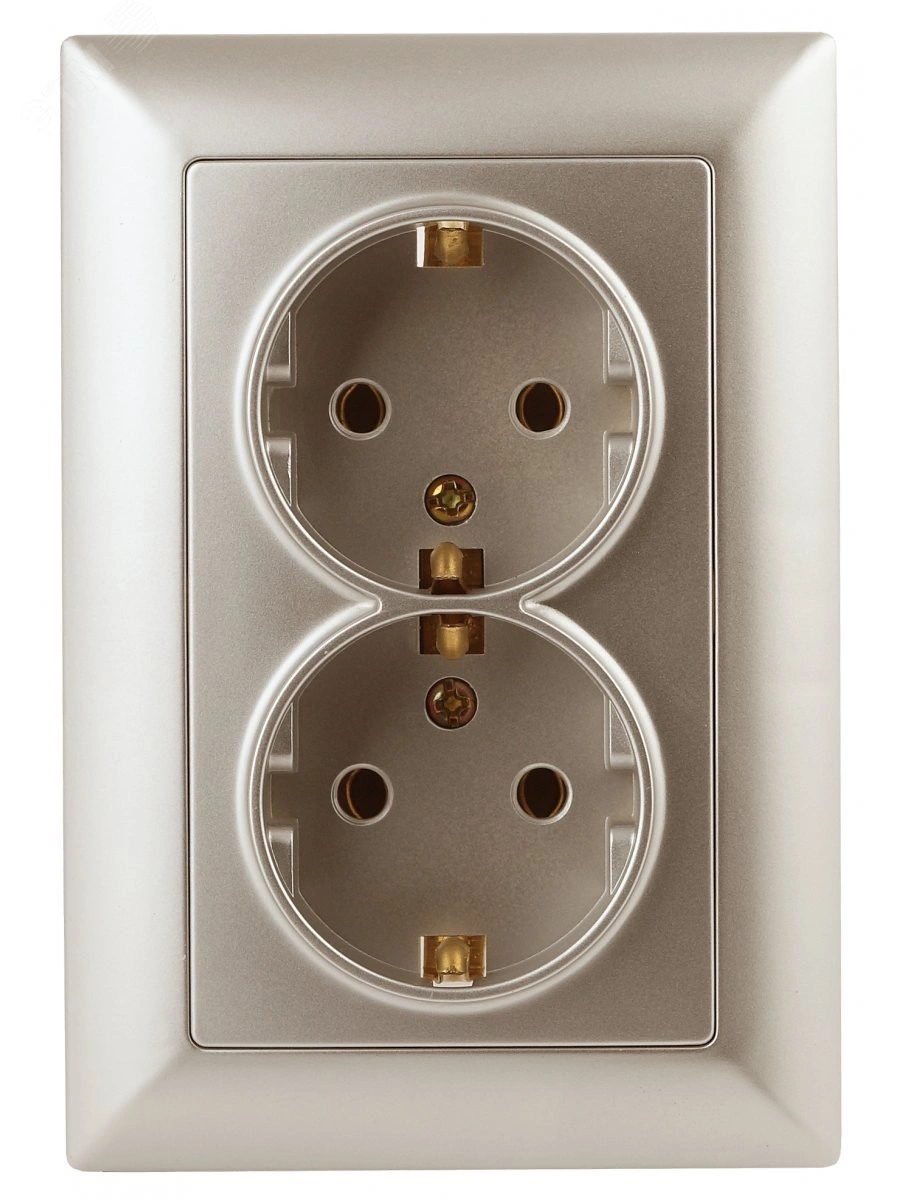 Розетка Intro Solo 4-208-04 с заземлением двойная 2X2P+E Schuko со шторками, 16А-250В, IP20, СУ, шампань