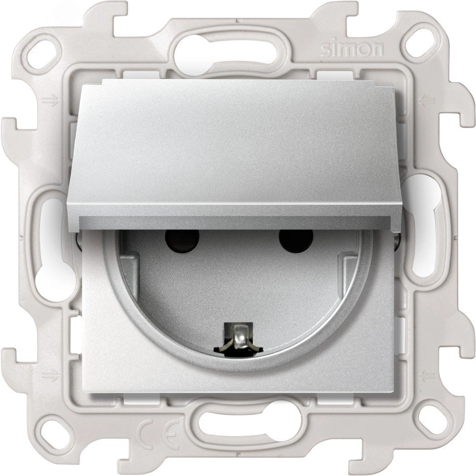 Розетка IP44 с крышкой, заземлением и шторками Schuko 2Р+Е 16A 250В~ цвета алюминий S24 Harmonie