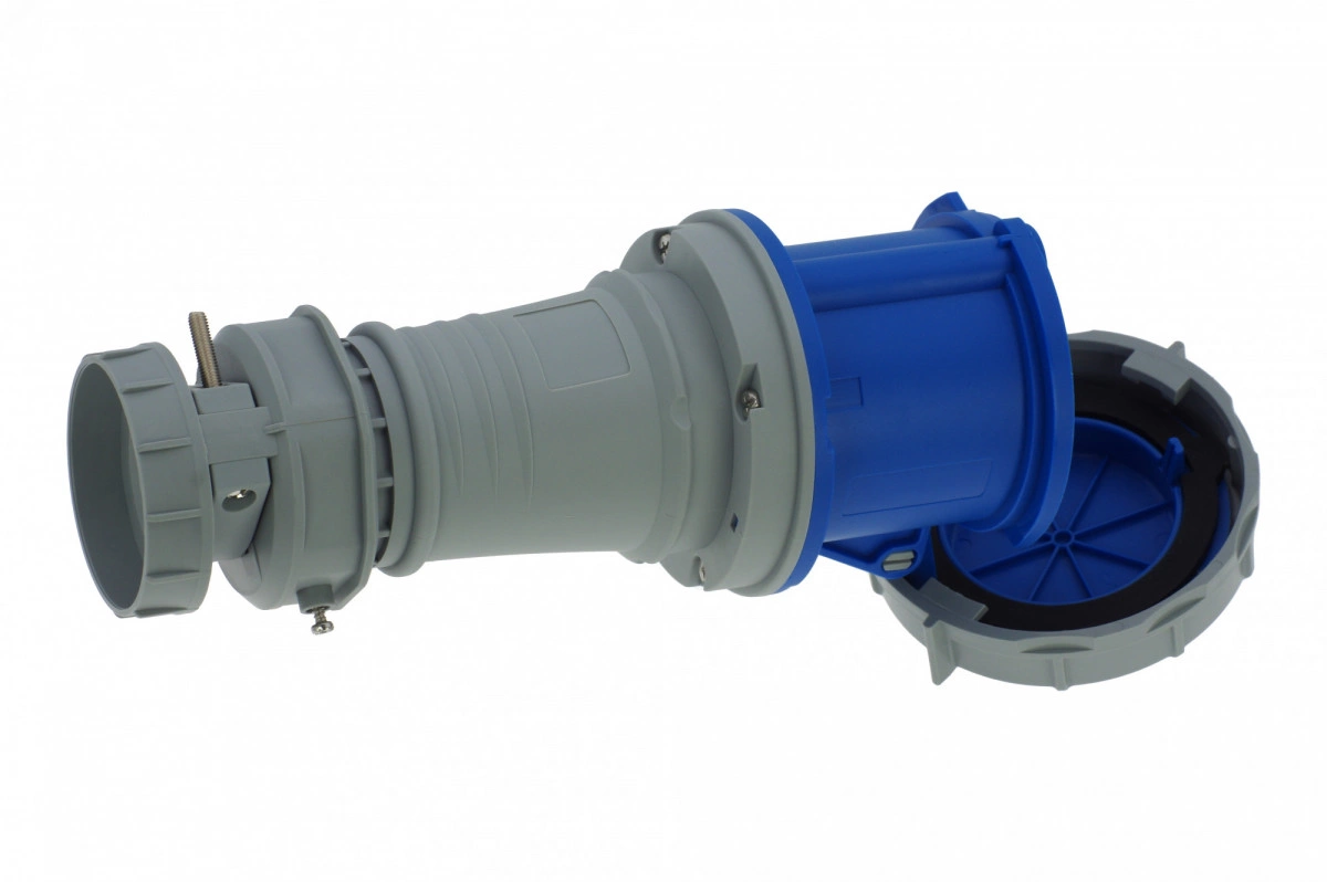 Розетка кабельная 63A/230V/1P+N+E/IP67, имеет винтовые контакты. Корпус выполнен из полиамида. Сальник с разгрузкой натяжения кабеля
