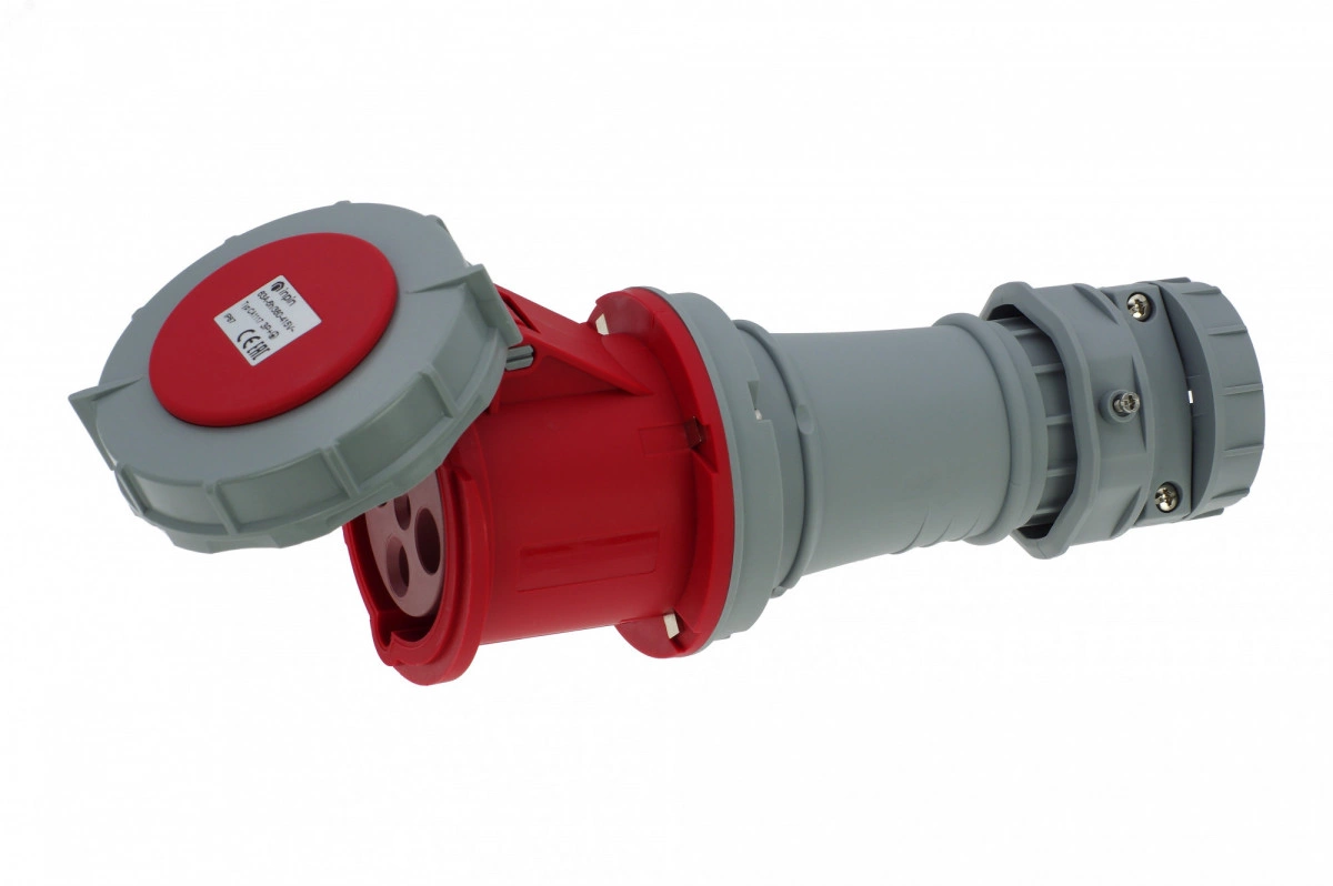 Розетка кабельная 63A/400V/3P+E/IP67, имеет винтовые контакты. Корпус выполнен из полиамида. Сальник с разгрузкой натяжения кабеля