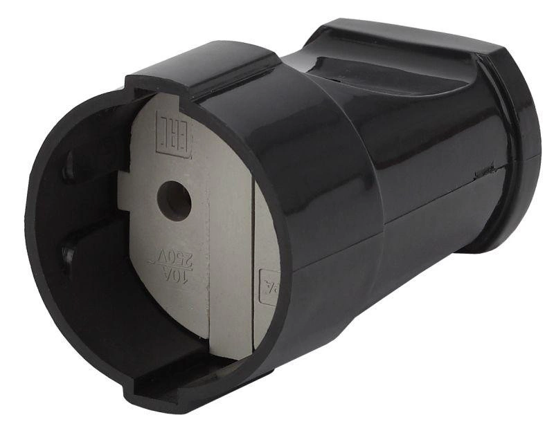 Розетка кабельная без заземл. прямая 10А черн. Rx1-B ЭРА Б0039681
