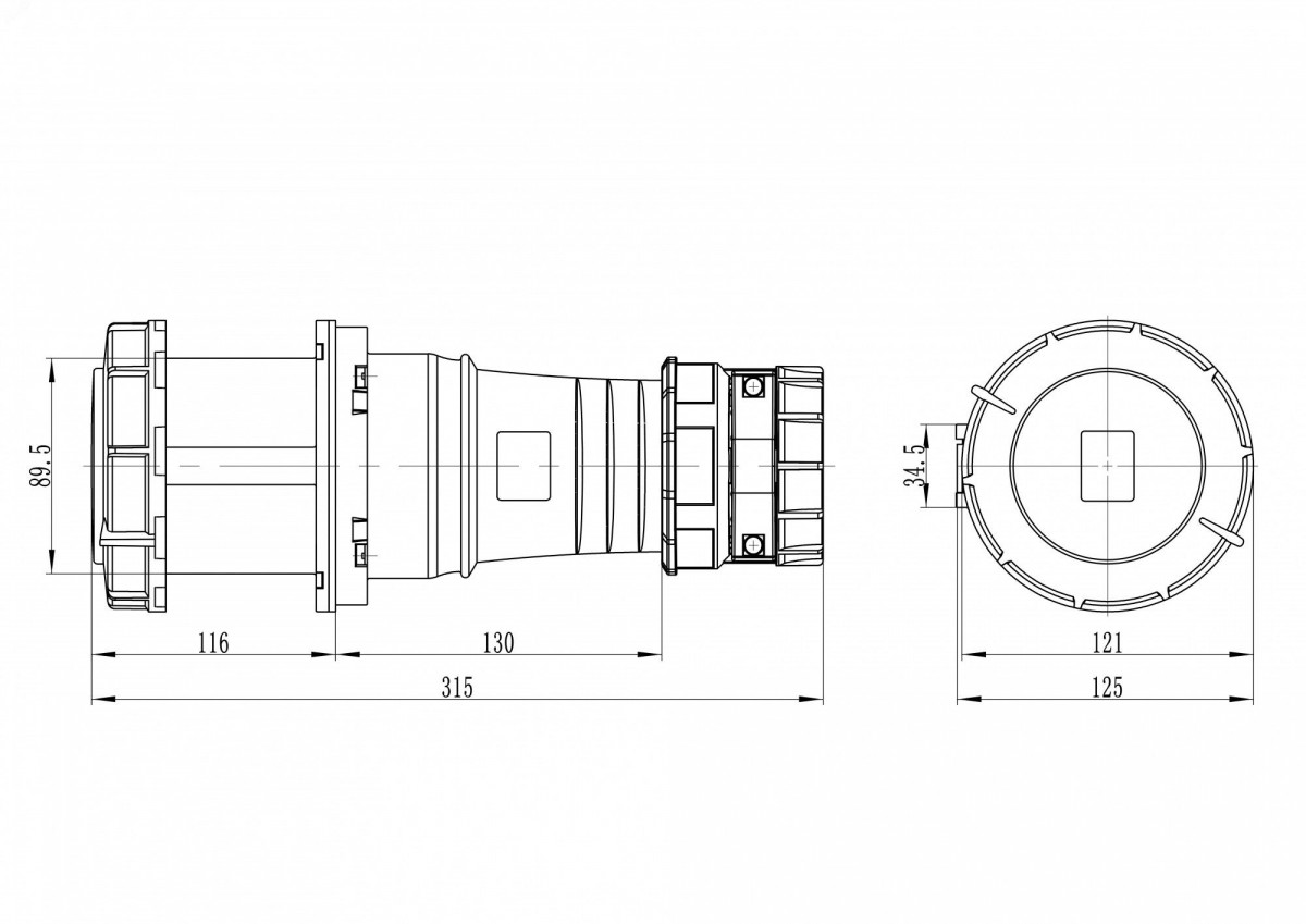 Розетка кабельная IP67 125A 2P+E 230V