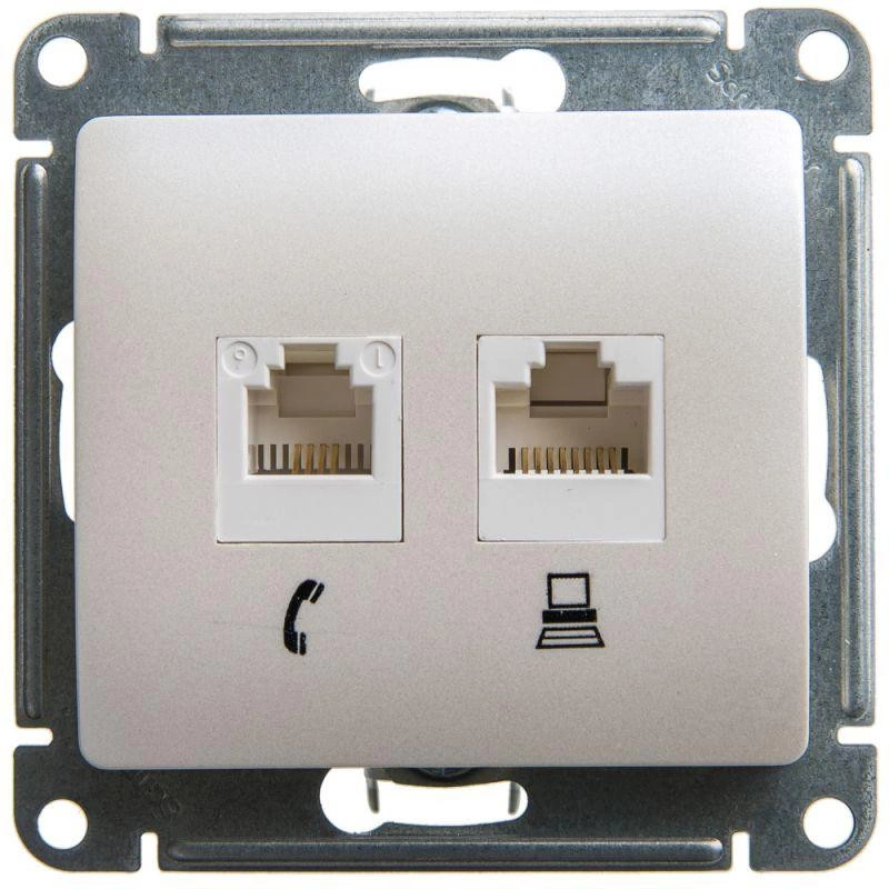Полное описание: Розетка компьютерная + телефонная 2-м СП Glossa RJ45 + RJ11 кат.5E механизм перламутр SE GSL000685