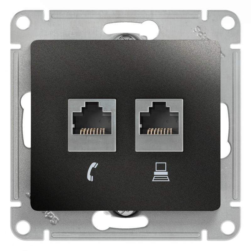 Полное описание: Розетка компьютерная + телефонная 2-м СП Glossa RJ45 + RJ11 кат.5E механизм антрацит SE GSL000785