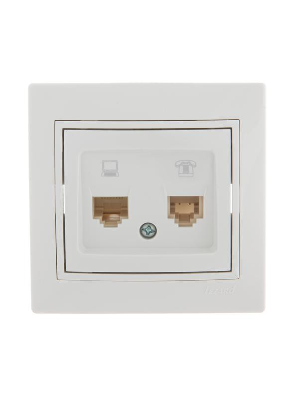 Полное описание: Розетка компьютерная + телефонная 2-м СП Mira RJ45 + RJ11 бел./бел. LEZARD 701-0202-143