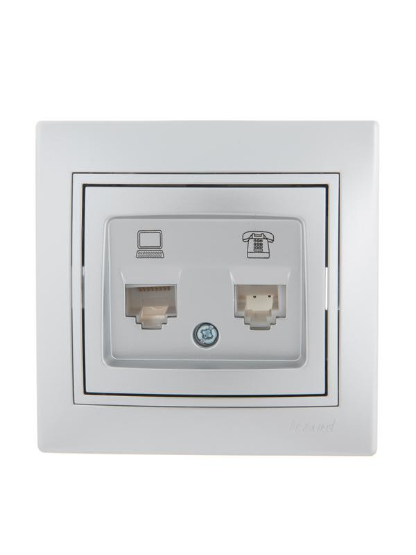 Полное описание: Розетка компьютерная + телефонная 2-м СП Mira RJ45 + RJ11 сер. метал. LEZARD 701-1010-143