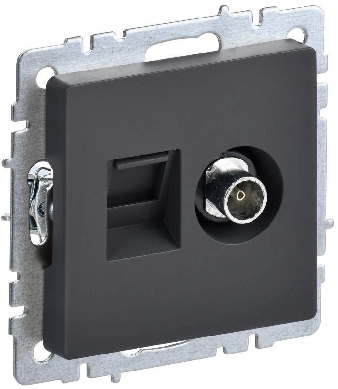 Розетка компьютерная + телевизионная 2-м BRITE РТВ/РК12-БрГ RJ45 кат.5E + TV графит IEK BR-AK20-1-K53