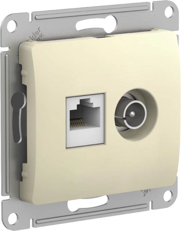 Полное описание: Розетка компьютерная + телевизионная 2-м Glossa RJ45 кат.5E + TV механизм беж. SchE GSL000289