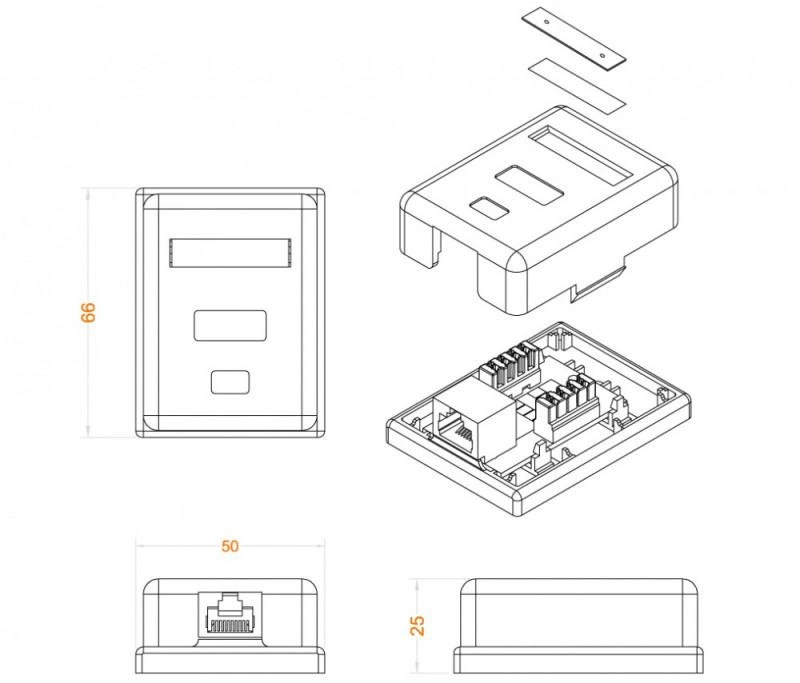 Розетка компьютерная 1-м ОП Dual IDC SB1-1-8P8C-C6-WH RJ45 (8P8C) кат.6 Hyperline 430232